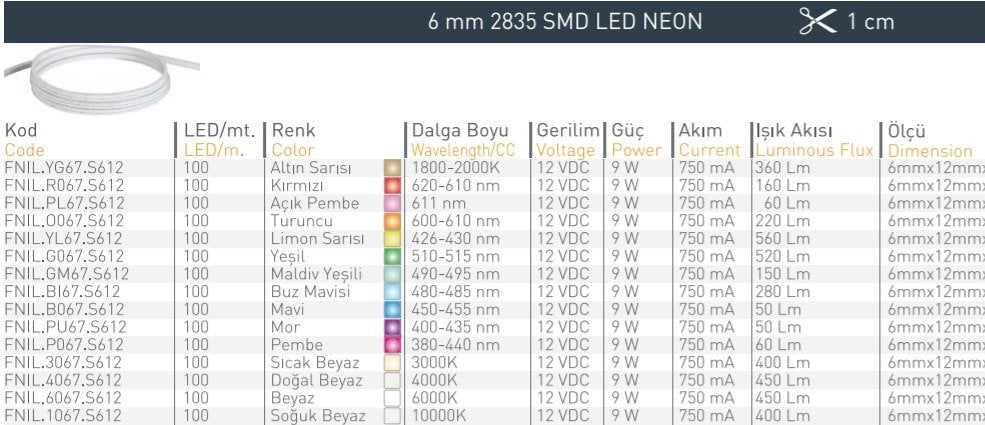 İLED IP67 NEON LED 12V 6MM